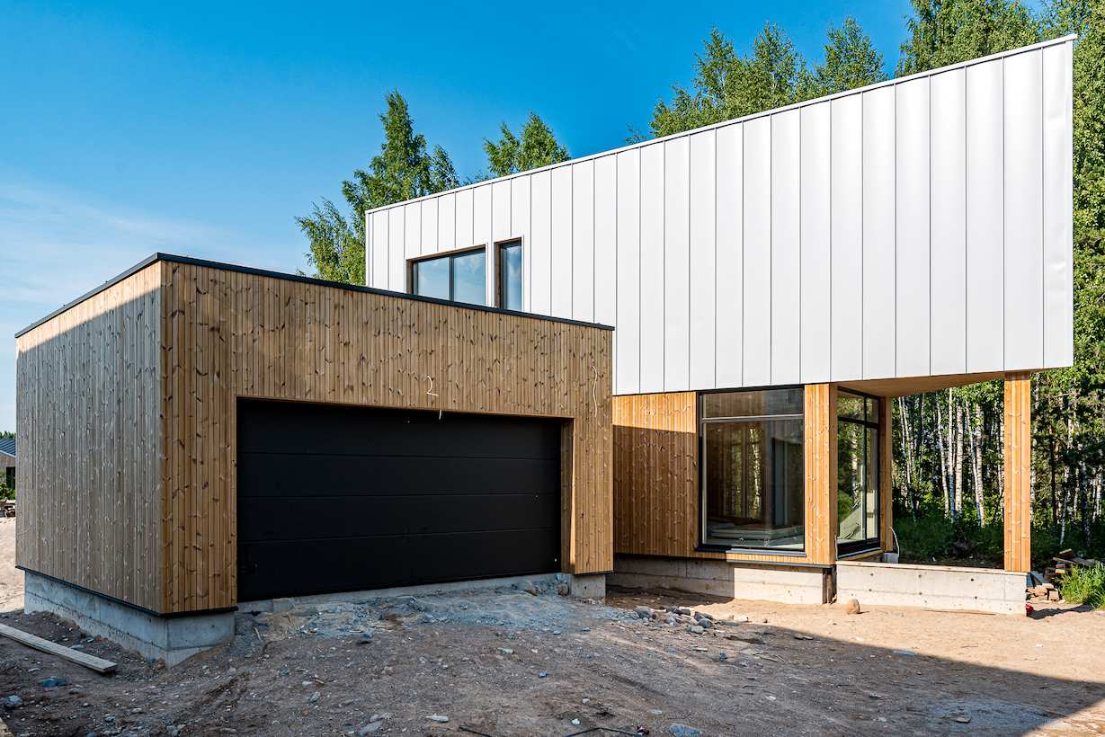 - FASADAS: ventiliuojamas, apdailinamas aukštos klasės skarda ir termo mediena;