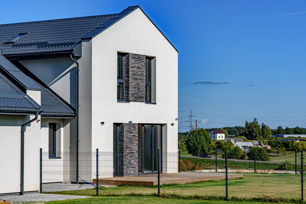 - Fasado apdaila - dekoratyvinis tinkas su klinkerio intarpais.