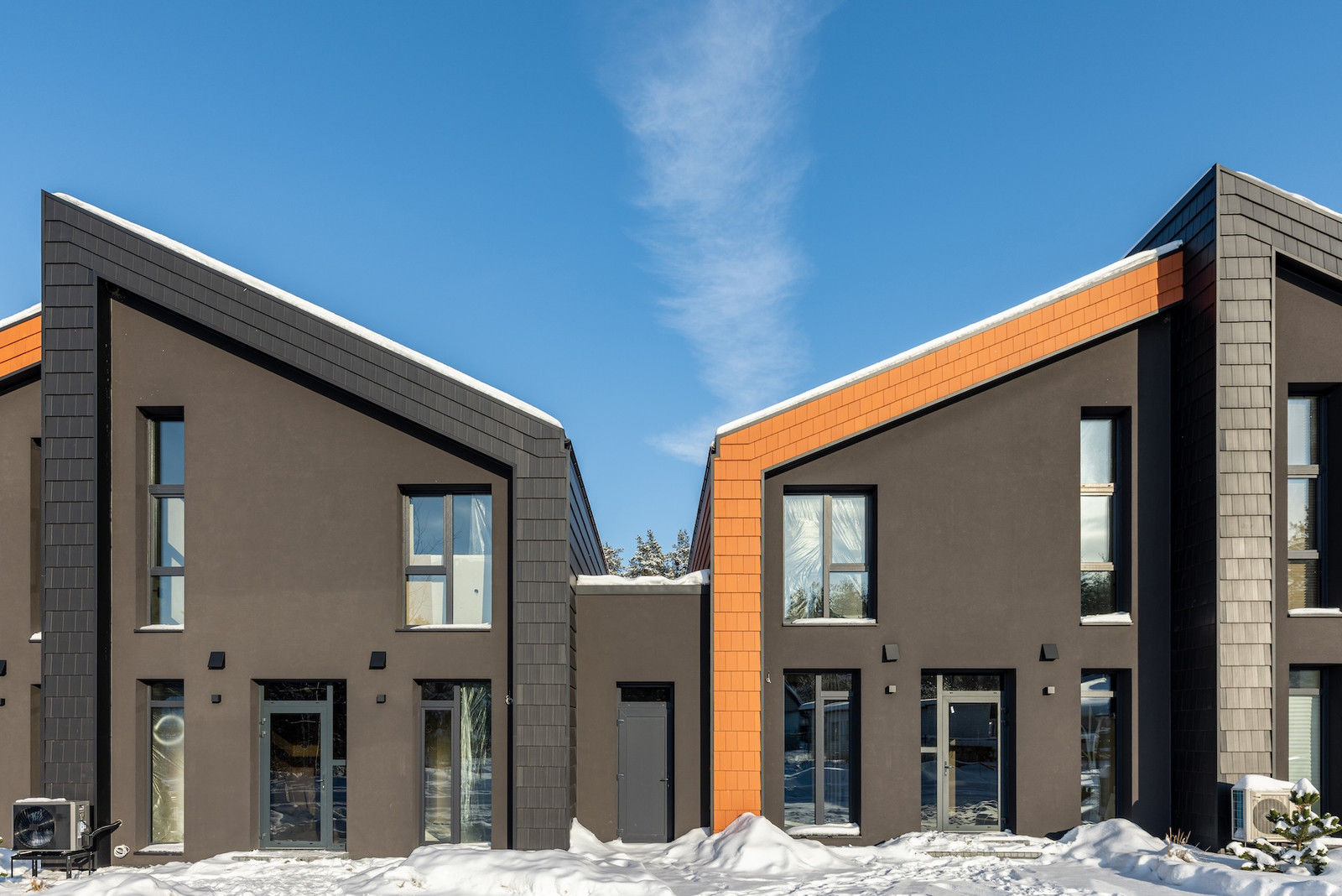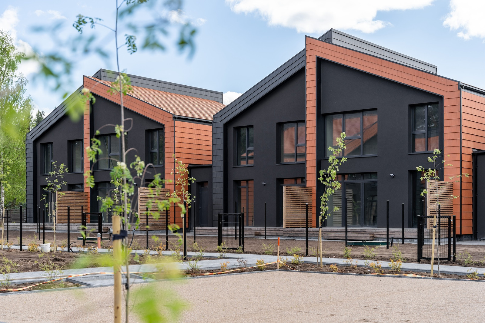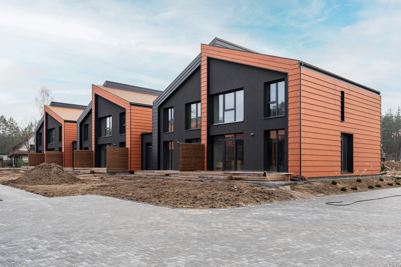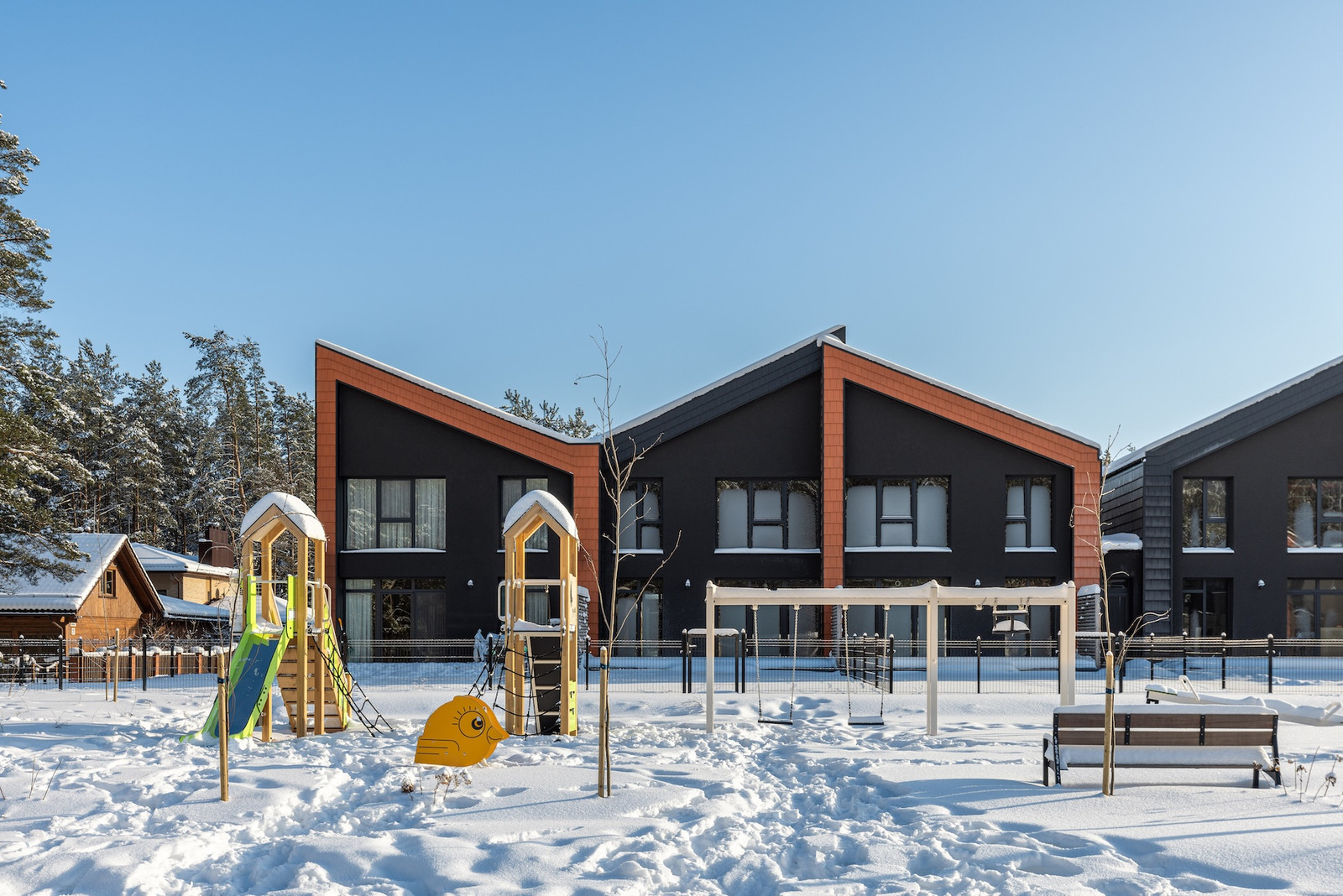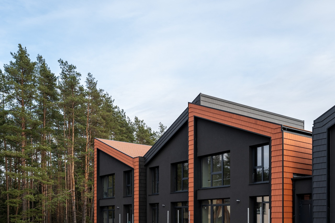 Projektui unikalumo suteikia inovatyvūs statybų sprendimai: namų fasaduose ir stoguose naudojamos dviejų spalvų - juodos ir molio - keraminės vokiškos čerpės suteiks namams ilgaamžiškumo, o gamtos unikalumą Jūsų interjere pabrėš medinio profilio, antracito spalvos vitrininiai langai, atveriantys pušyno žavesį.