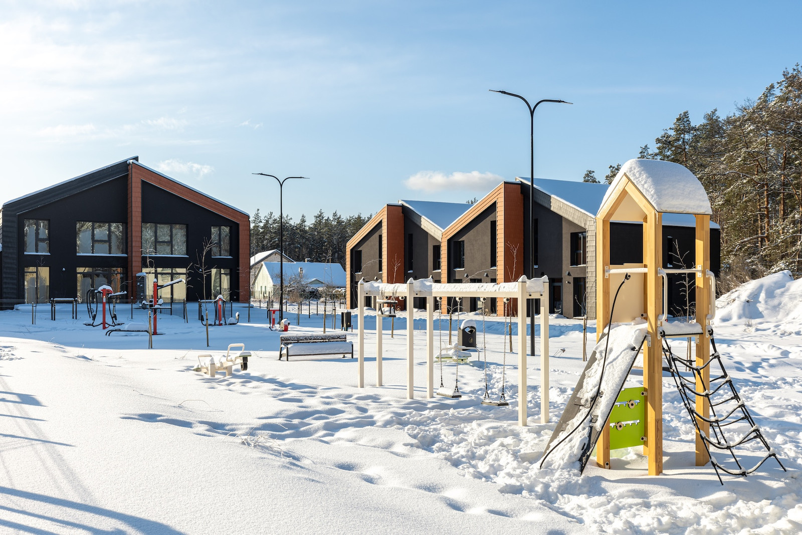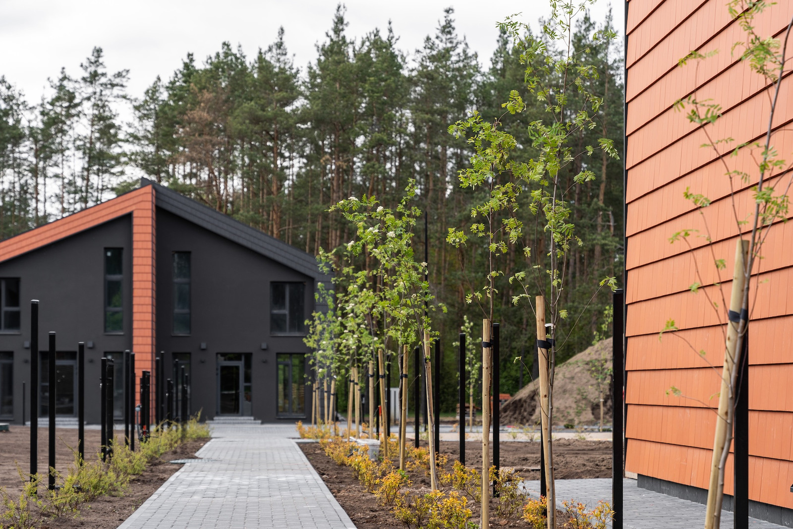 Visavertis gyvenamasis kvartalas - asfaltuojamas miško kelias iki pat namų, įrengiama aktyviojo laisvalaikio zona, bendroji teritorija - apželdinama daugiamečiais augalais. Kiekvienam namui suformuojamas individualus kiemas ir parkavimo vietos (2,18-3,29 aro dydžių).