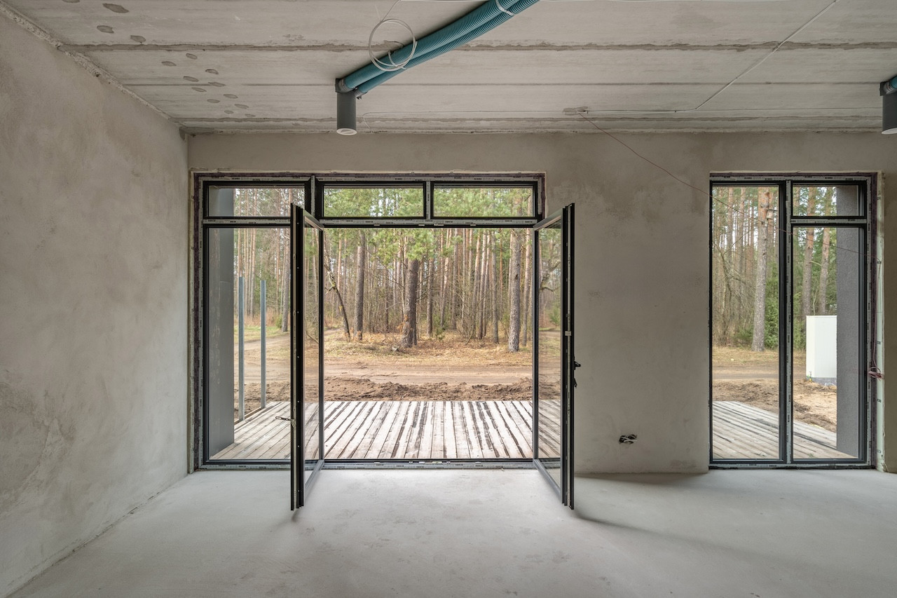 - durys į terasą - dvivėrės;