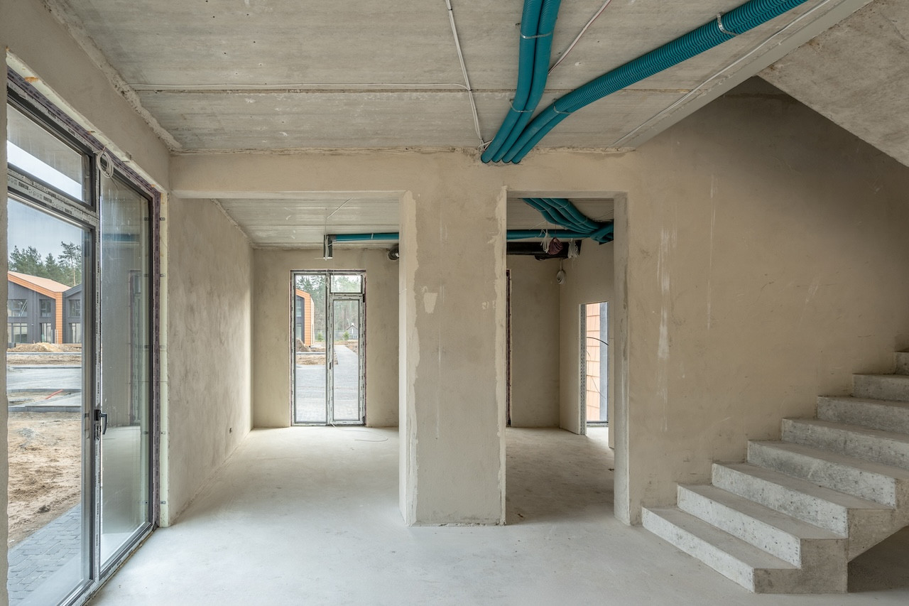 - sumontuotas vidaus vandentiekio ir nuotekų sistemos vamzdynas (iki prietaisų vietos);