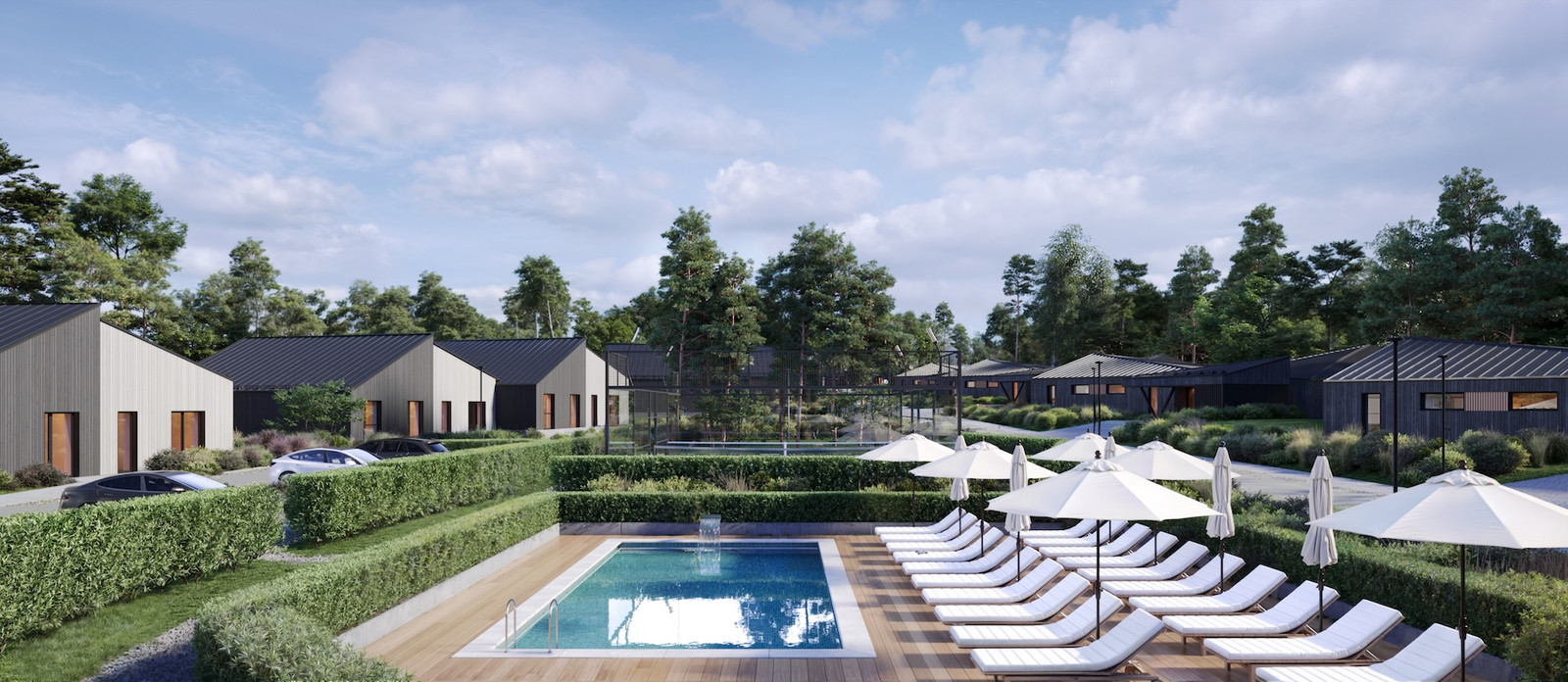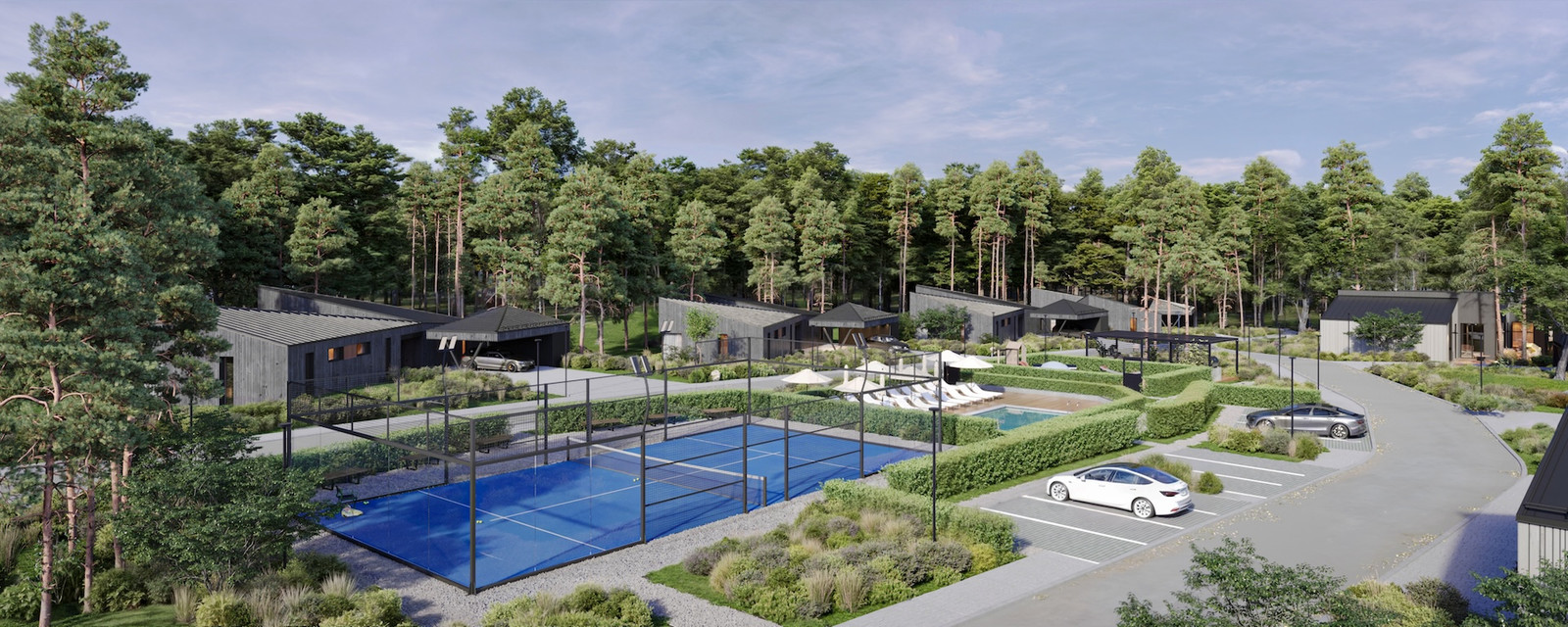 - Įrengiama vaikų žaidimų aikštelė, baseinas ir padelio kortai.