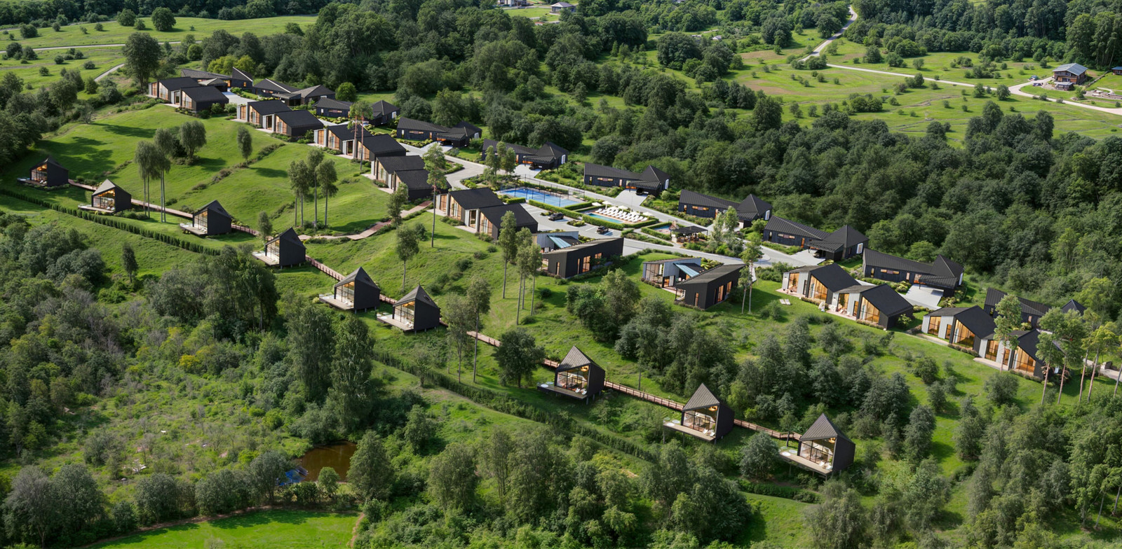 Teritorijoje statomi 26 namai, kurie išdėstyti itin erdviai ir organiškai papildo kalvotą reljefą bei supančią gamtinę aplinką. Kiekvienas gyventojas turi ne tik kokybišką, tvarų būstą, bet ir 10–30 a privatų sklypą, kuriame gali kurti savo aplinką – auginti, statyti, ilsėtis, jaustis arčiau žemės ir gamtos. Kvartale suplanuoti keturi namų tipai: nuo kompaktiškų 104 kv. m ploto dvibučių jaunoms šeimoms ar kūrybos profesionalams, iki erdvių 165 kv. m ploto vienbučių su terasomis. Kvartalo centre kuriama bendruomenės erdvė su šildomu baseinu, padelio kortu, žaidimų aikštele, grilio erdve ir poilsio zonomis. Įrengiama visa infrastruktūra: asfaltas, apšvietimas, elektromobilių įkrovimo stotelės, išmanūs sprendimai.