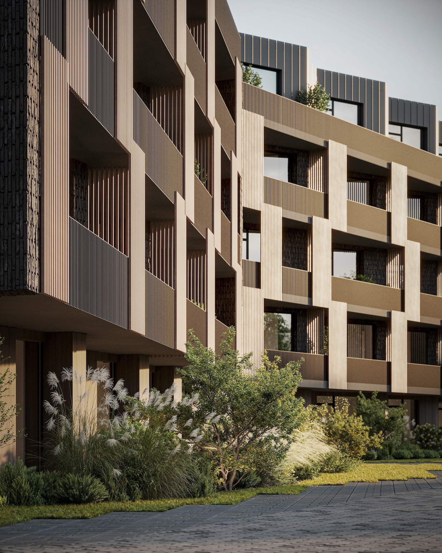 Kurdami architektūrą, projekto autoriai rėmėsi pajūrio nuotaikomis – horizontaliomis ir vertikaliomis linijomis, šviesiais, tonais ir natūralių medžiagų deriniais. Pastatų holai ir laiptinės pasižymi reprezentatyvumu ir jaukia atmosfera, o langų vitrinos ir vizualinės jungtys su kiemais leidžia nuolat jausti ryšį su gamta. Tai namai, į kuriuos gera grįžti – ne tik dėl jūros, kurią pasieksite pėsčiomis, bet ir dėl malonios, ramios nuotaikos pačiame pastate.