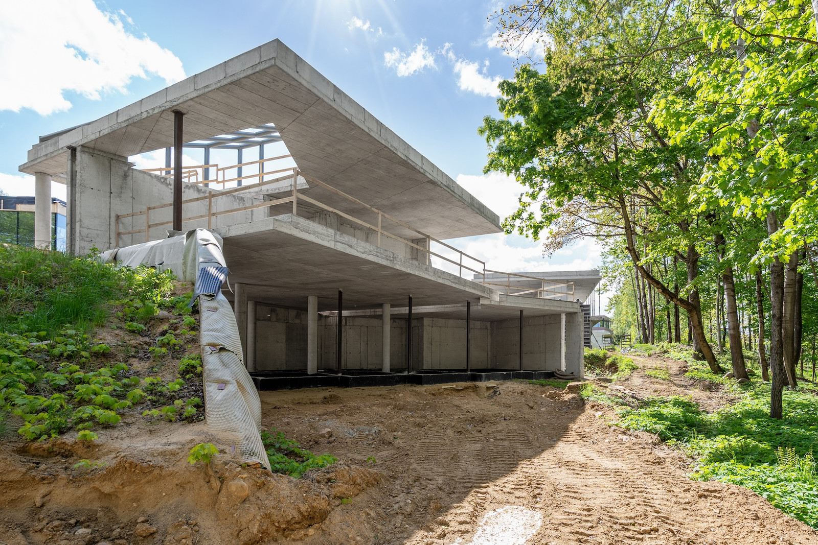 Kiekvienas gyvenamasis namas suprojektuotas iš dviejų tūrių: skaidraus gyvenamojo ir privataus šeimos poilsio. Tūriai – skaidrusis ir privatusis – komponuojami skirtinguose reljefo lygiuose ir tampa atskirais pastato aukštais su savo atskirais išėjimais į lauką – iš „skaidraus gyvenamojo“ į terasą, iš „privataus šeimos“ į pusiau uždarą kiemą. Patalpų insoliacija užtikrinama „šviesos skėčiais“ – virš pagrindinio patekimo į pastatą ir laiptinės suprojektuotais tūriniais švieslangiais, kurie bet kuriuo šviesiu paros metu užtikrina natūralios šviesos patekimą į abu pastato aukštus, o tamsiu paros metu kuria kvartalo „kelrodės šviesos“ siluetą.